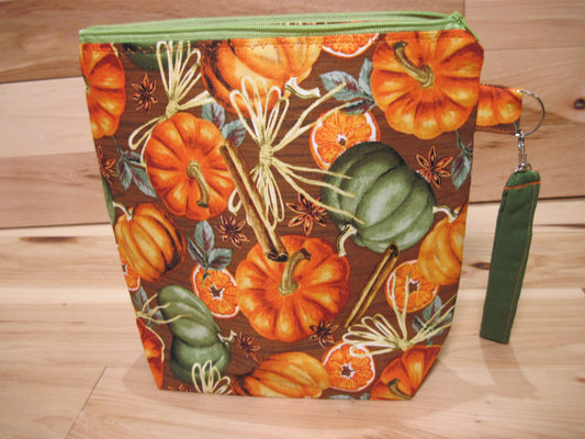 Small Window Drawstring ~ Pumpkins w/ basket weave fabric project bag