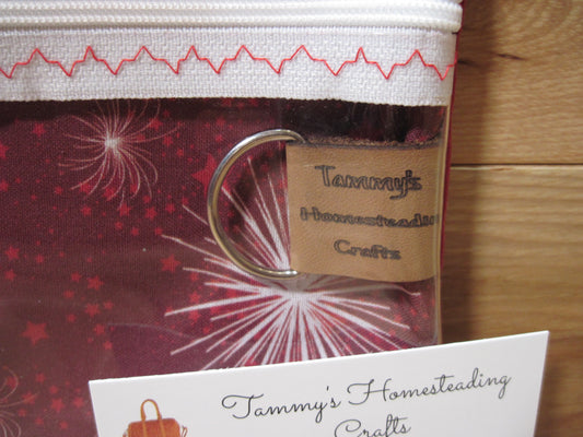 Notions Bag ~ Burgandy w/ white star bursts, white zipperVendor:Tammy's Homesteading CraftsRegular price $12.00 USDRegular priceUnit price per-