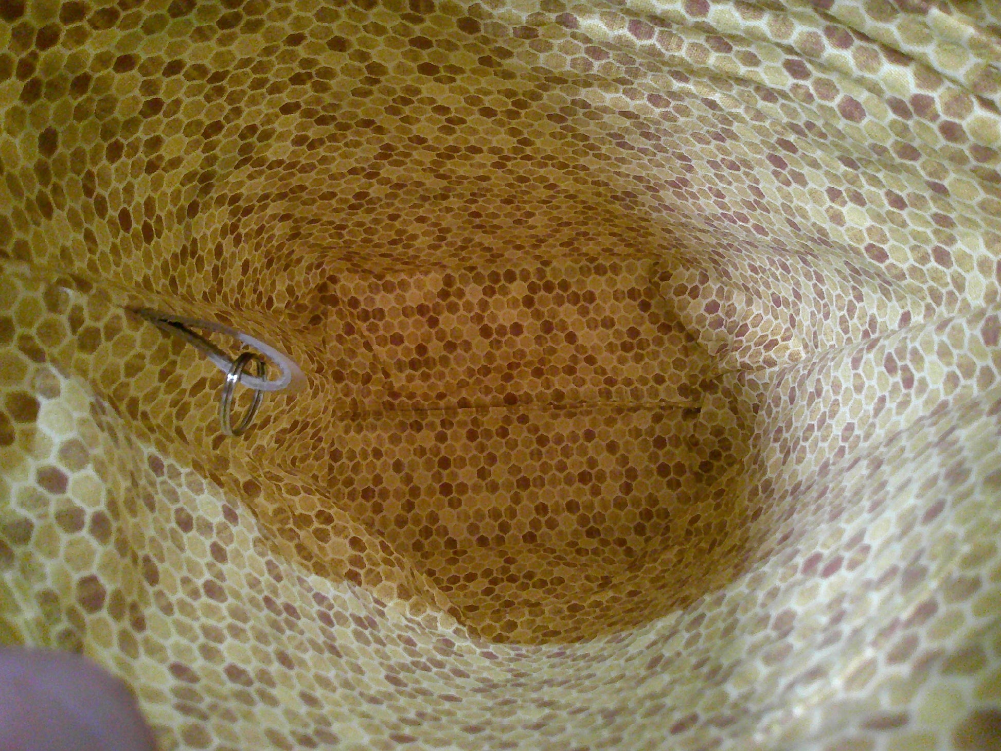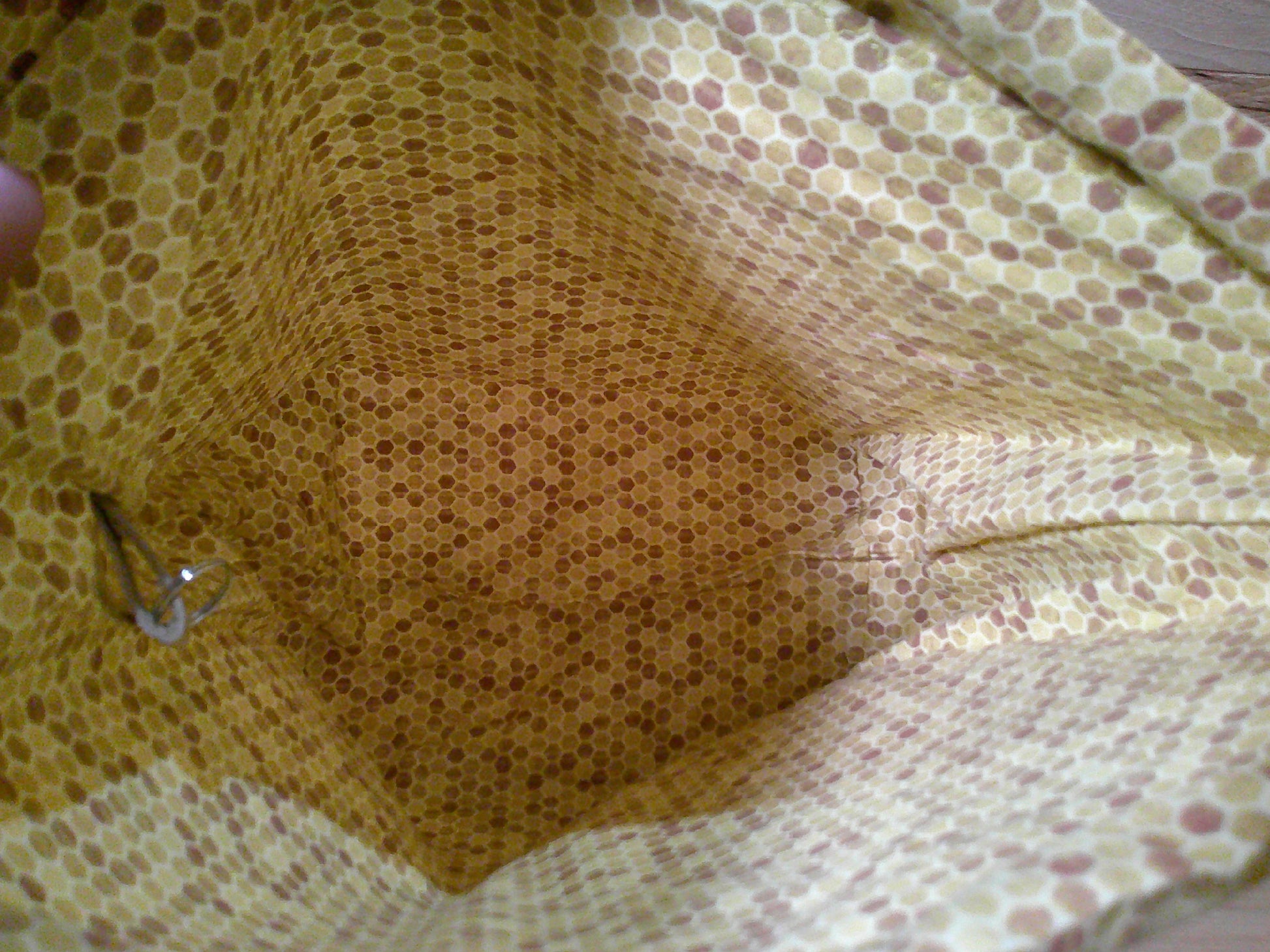The small size bag has snaps on the top to allow you to keep your items securely inside the bag. There is a key ring inside to keep progress keepers and stitch markers on. On the outside there is a key ring tag with a lobster clasp wristlet. The bag is fully lined with medium weight interfacing between to allow it to stand upright.