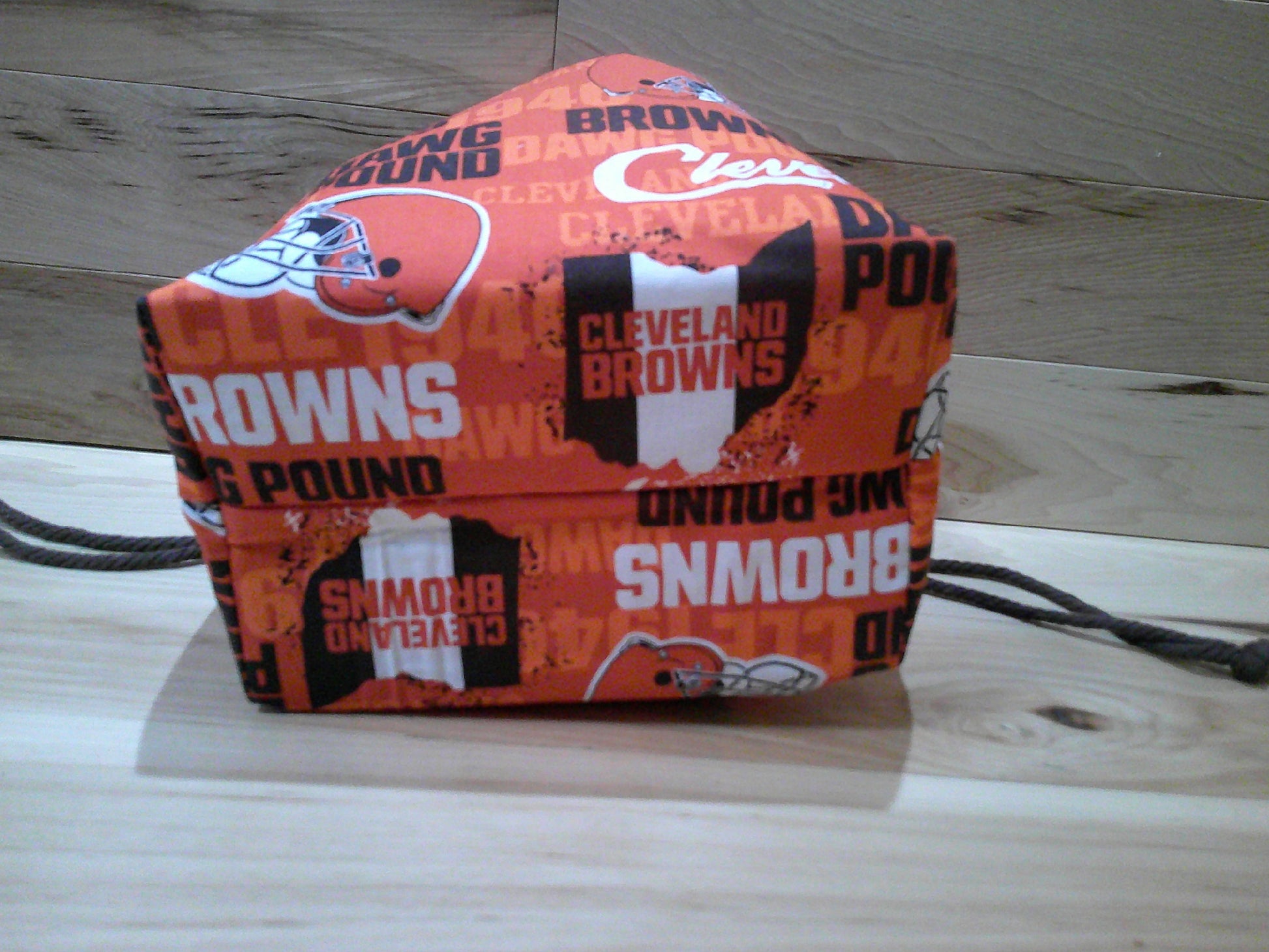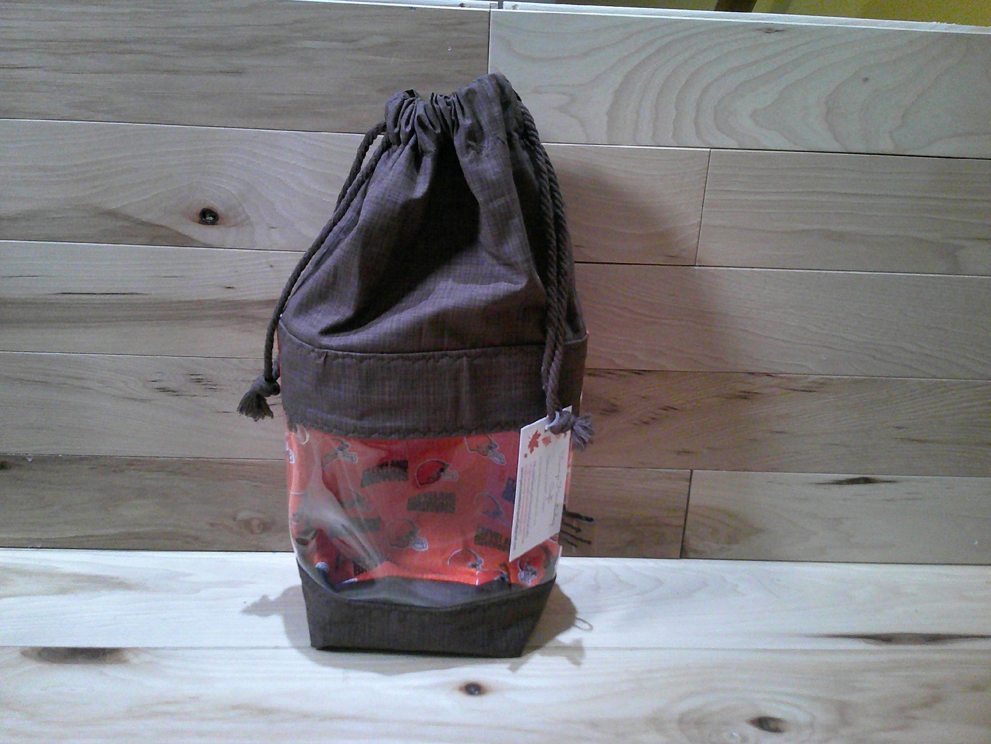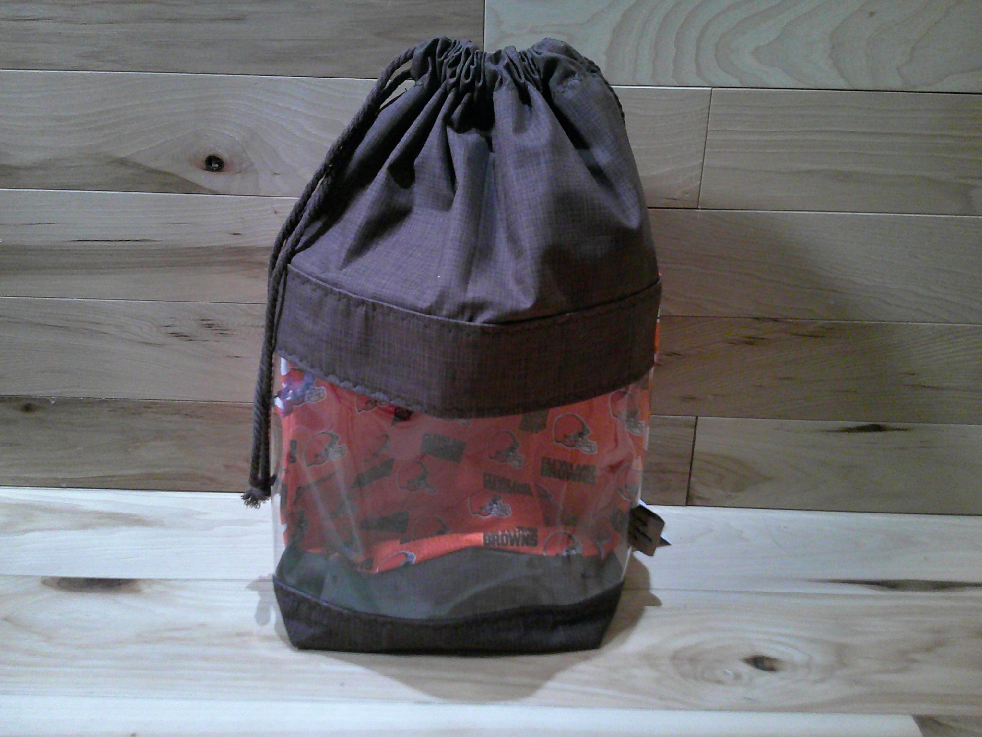 The medium drawstring bag has 2 drawstrings that can be pulled from both sides to close the bags. This bag has a stitch marker ring on the inside of the bag. The bag is fully lined with medium weight interfacing between to allow it to stand upright.