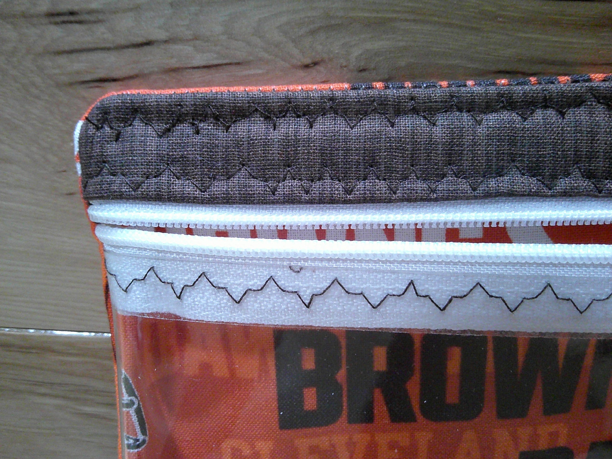The small notions size bag to keep things like scissors, stitch markers, progress keepers, tape measure and other little things you might need for your projects. There is a D-ring on the inside to hold stitch markers. This bag has a zipper on the front top and a vinyl front so you can see what is in your bag.