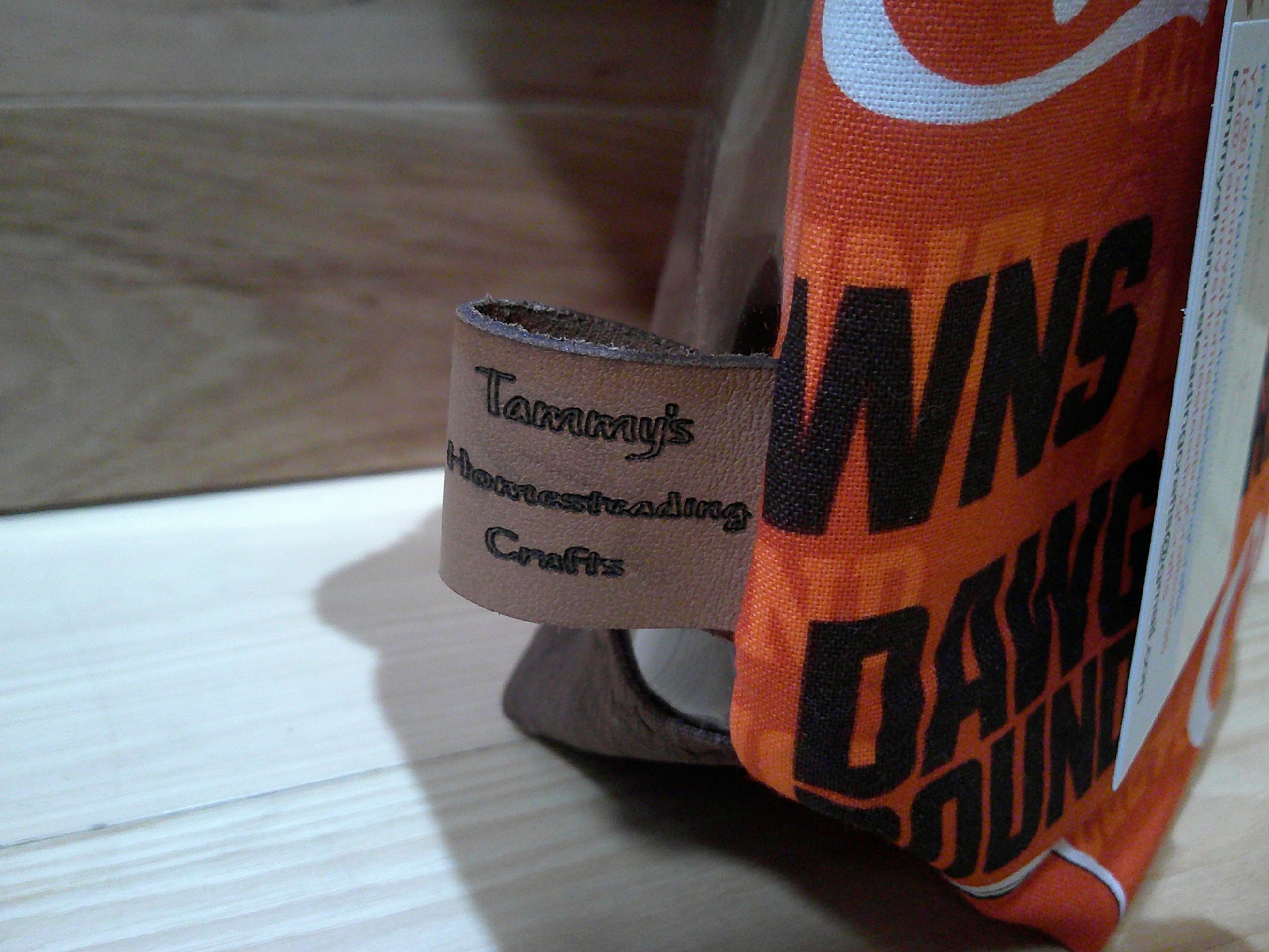 The medium size bag has snaps on the top to allow you to keep your items securely inside the bag. There is a key ring inside to keep progress keepers and stitch markers on. On the outside there is a key ring tag with a lobster clasp wristlet. The bag is fully lined with medium weight interfacing between to allow it to stand upright.