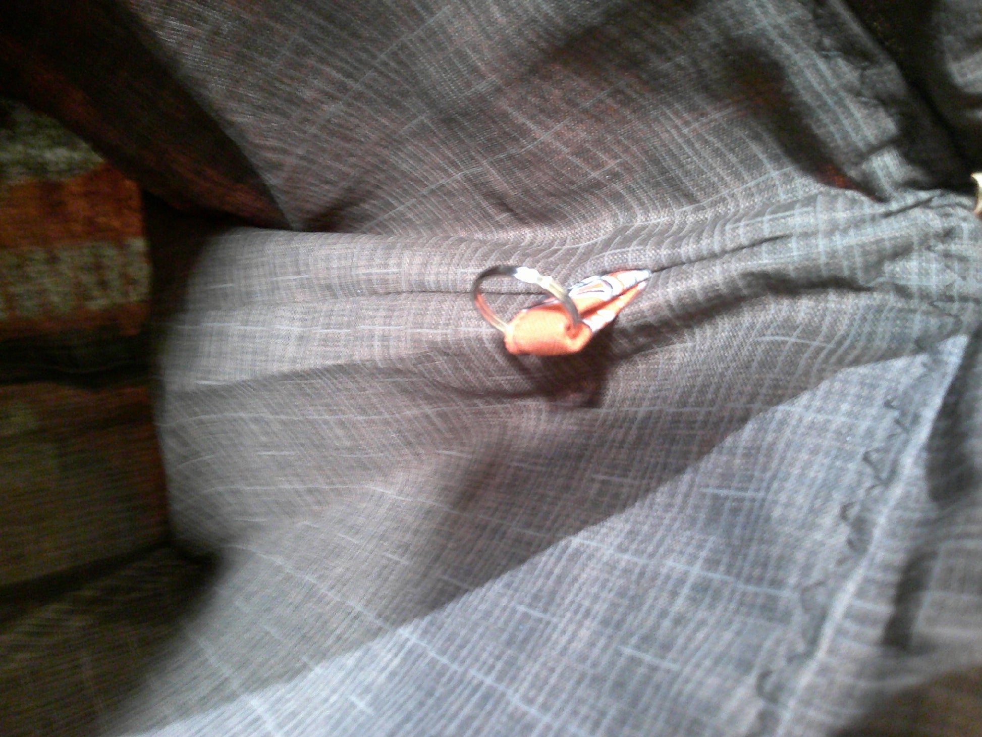 The bag has a drawstring on top to allow you to keep your items securely inside the bag. With a 4" extra on the top. There is a key ring inside to keep progress keepers and stitch markers on. The bag is fully lined with medium weight interfacing between to allow it to stand upright.