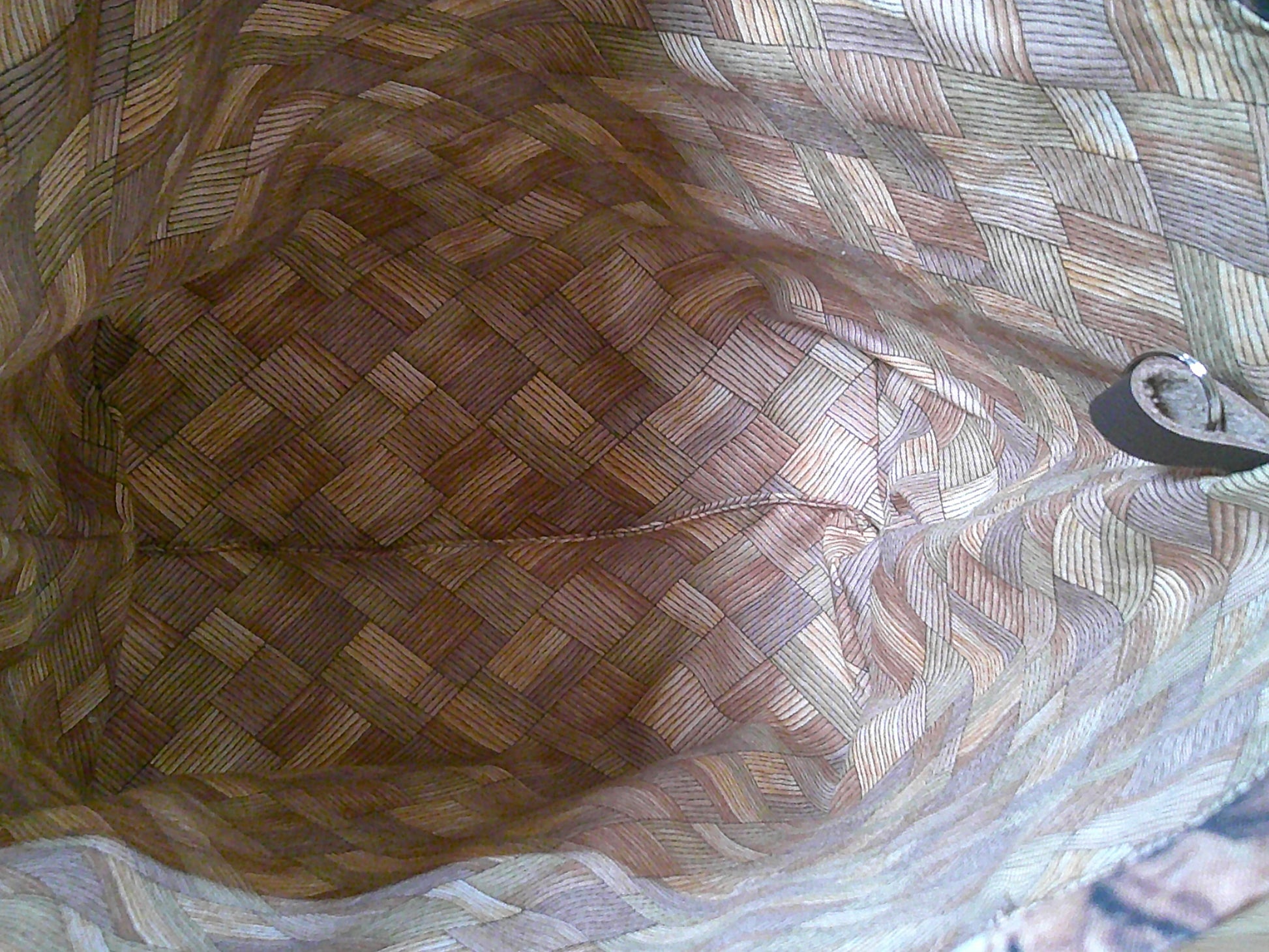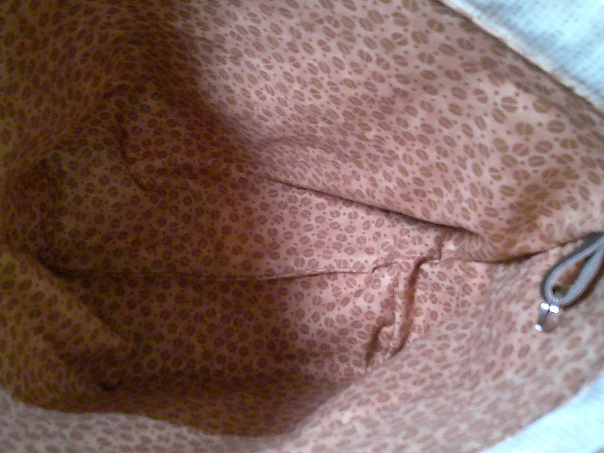 The medium drawstring bag has 2 drawstrings that can be pulled from both sides to close the bags. This bag has a stitch marker ring on the inside of the bag. The bag is fully lined with medium weight interfacing between to allow it to stand upright.