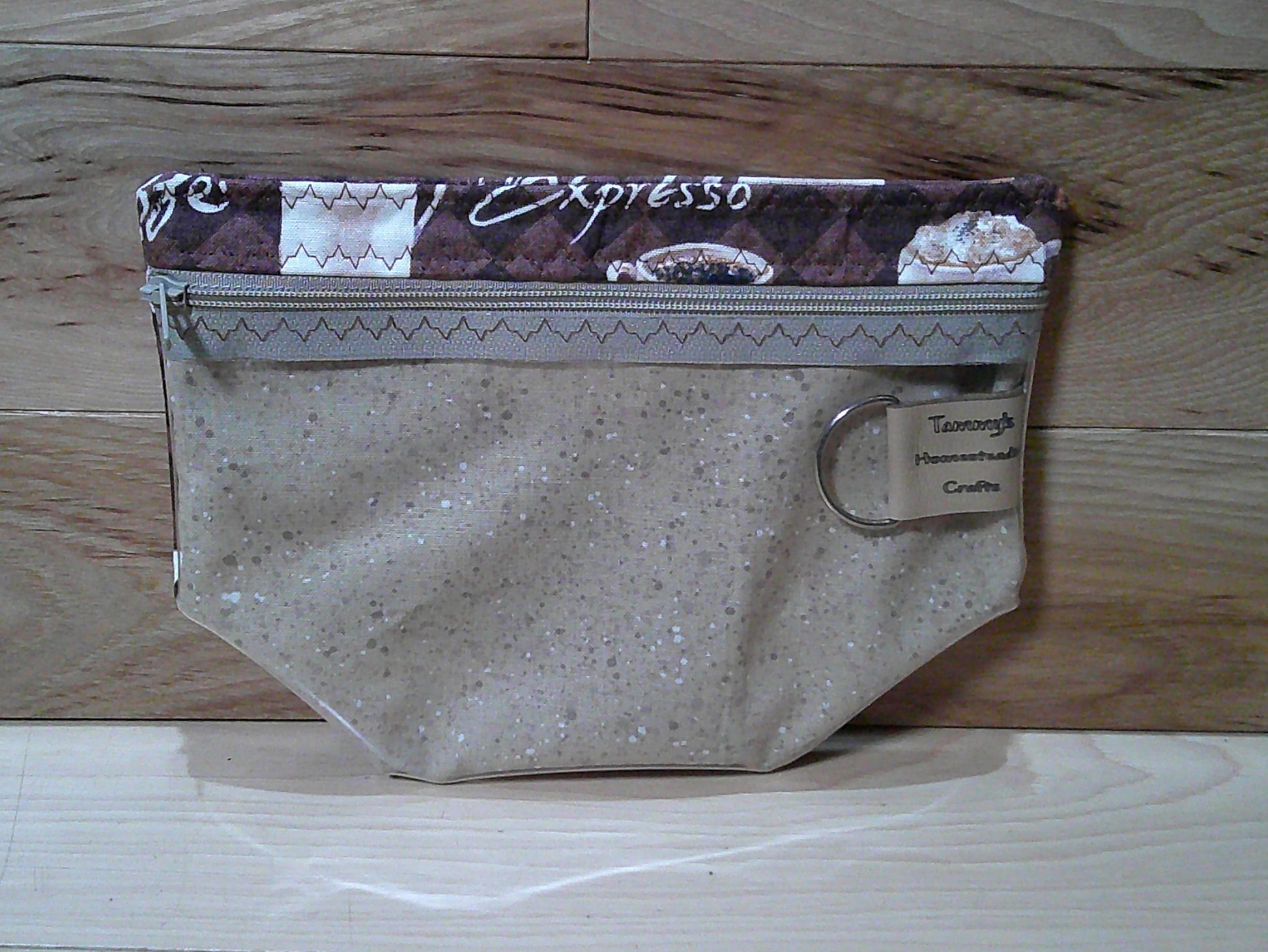 The small notions size bag to keep things like scissors, stitch markers, progress keepers, tape measure and other little things you might need for your projects. There is a D-ring on the inside to hold stitch markers. This bag has a zipper on the front top and a vinyl front so you can see what is in your bag.