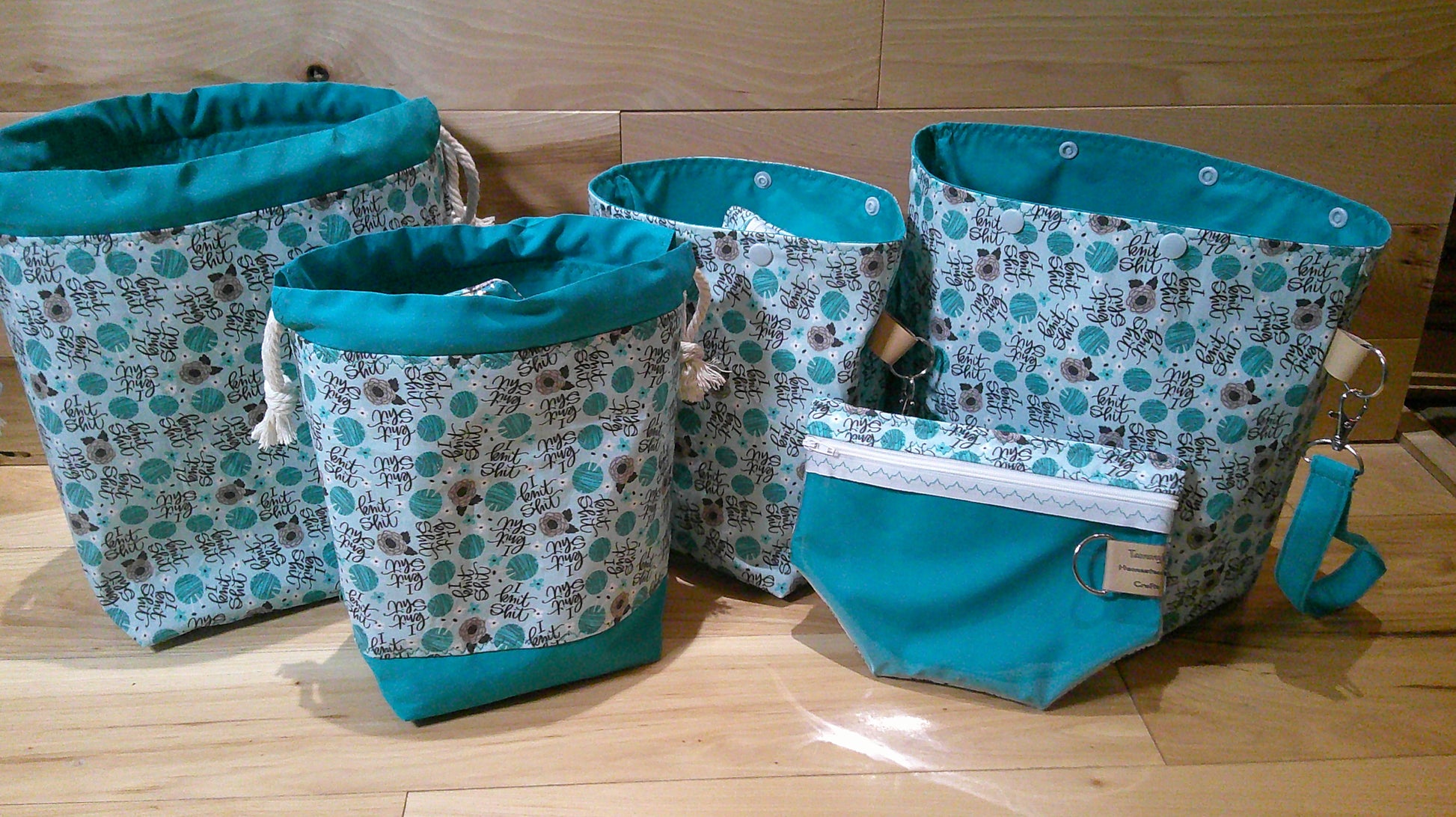 "I knit shit" ~ project bags