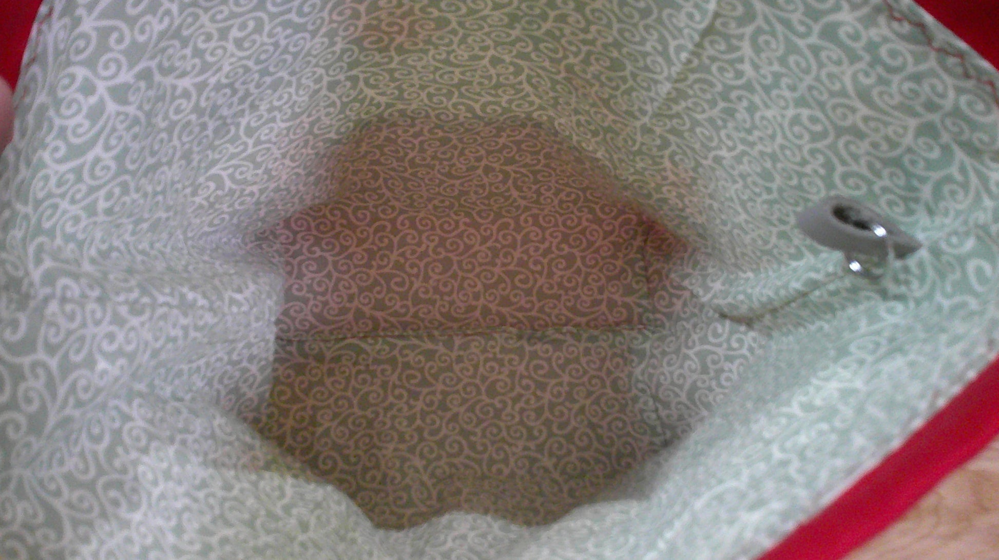 The small size bag has snaps on the top to allow you to keep your items securely inside the bag. There is a key ring inside to keep progress keepers and stitch markers on. On the outside there is a key ring tag with a lobster clasp wristlet. The bag is fully lined with medium weight interfacing between to allow it to stand upright.