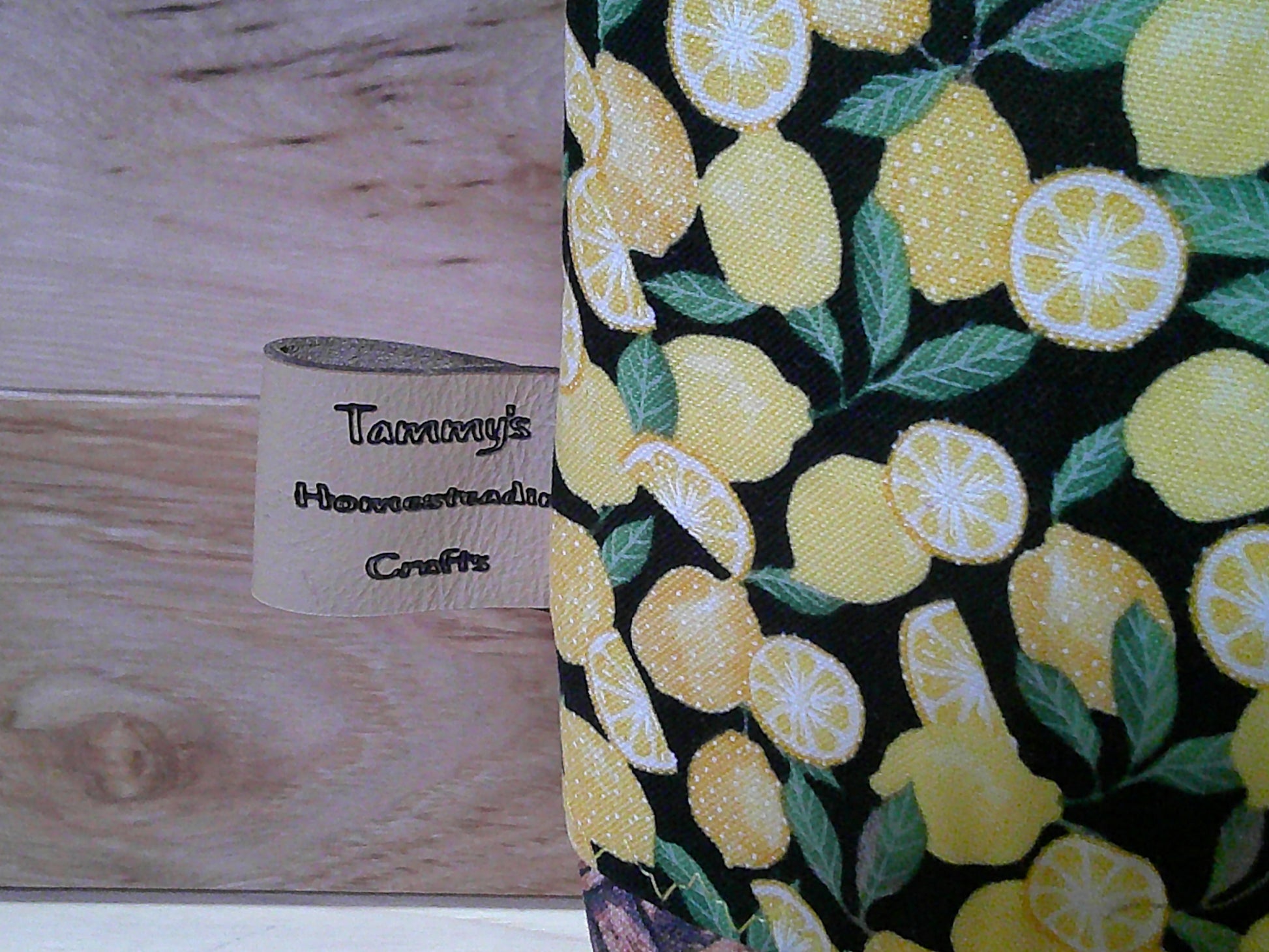 The medium size bag has snaps on the top to allow you to keep your items securely inside the bag. There is a key ring inside to keep progress keepers and stitch markers on. On the outside there is a key ring tag with a lobster clasp wristlet. The bag is fully lined with medium weight interfacing between to allow it to stand upright.