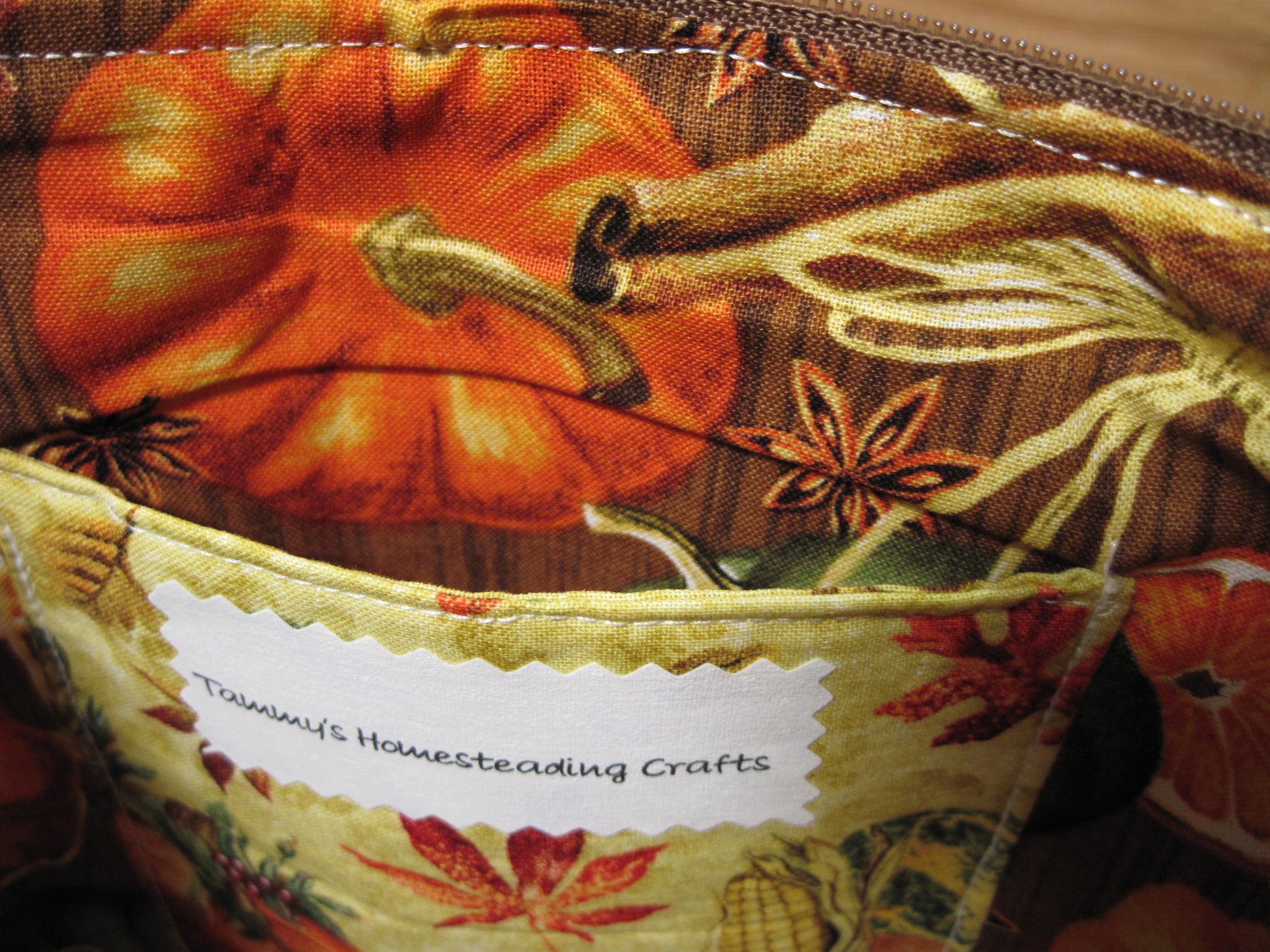 Medium Pumpkins & Leaves with inside pocket Project bag