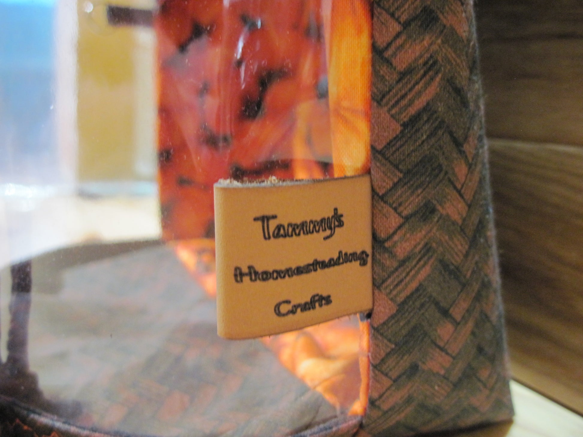 Medium Window Drawstring ~ w/ pumpkins in brown basket weave fabric project bag