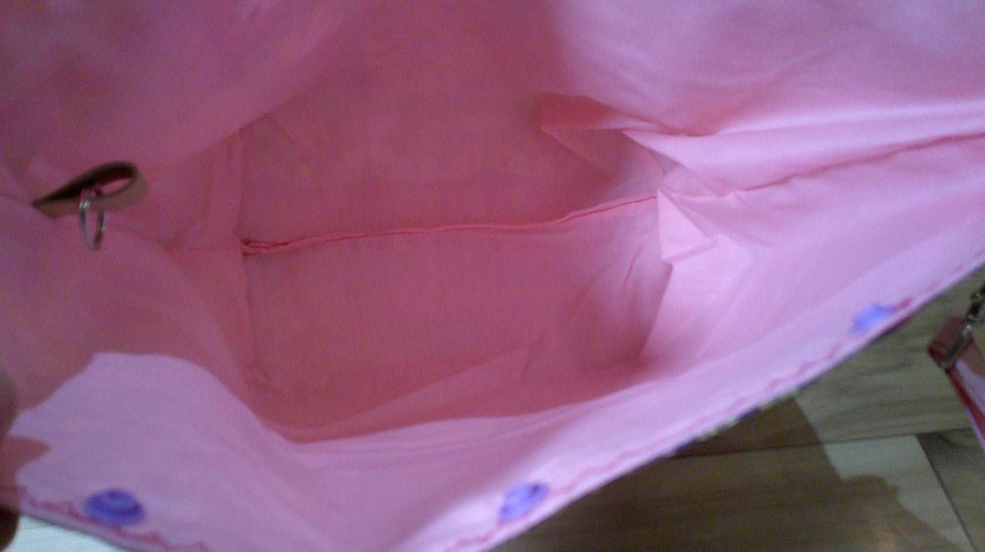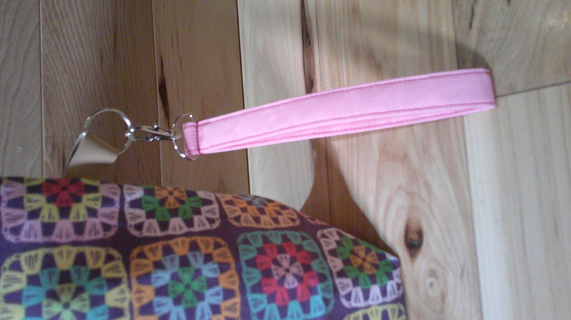The medium size bag has snaps on the top to allow you to keep your items securely inside the bag. There is a key ring inside to keep progress keepers and stitch markers on. On the outside there is a key ring tag with a lobster clasp wristlet. The bag is fully lined with medium weight interfacing between to allow it to stand upright.