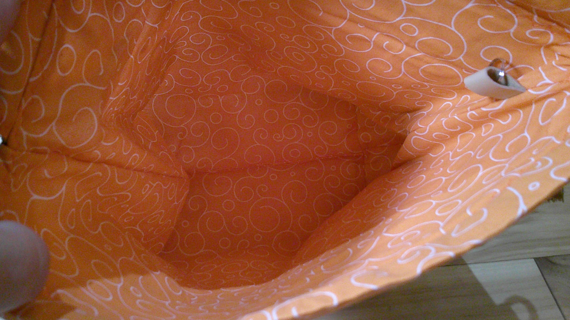 The small size bag has snaps on the top to allow you to keep your items securely inside the bag. There is a key ring inside to keep progress keepers and stitch markers on. On the outside there is a key ring tag with a lobster clasp wristlet. The bag is fully lined with medium weight interfacing between to allow it to stand upright.