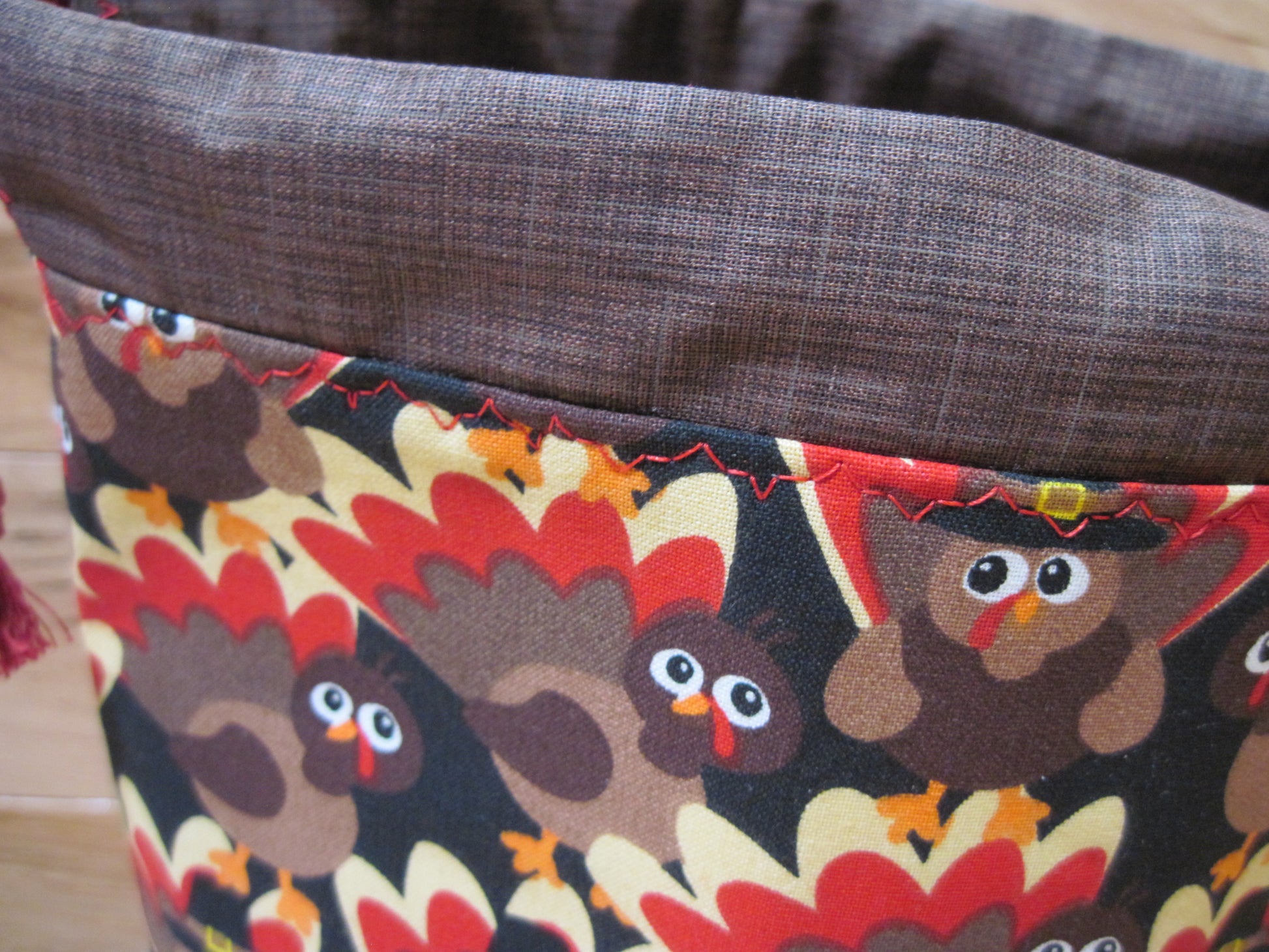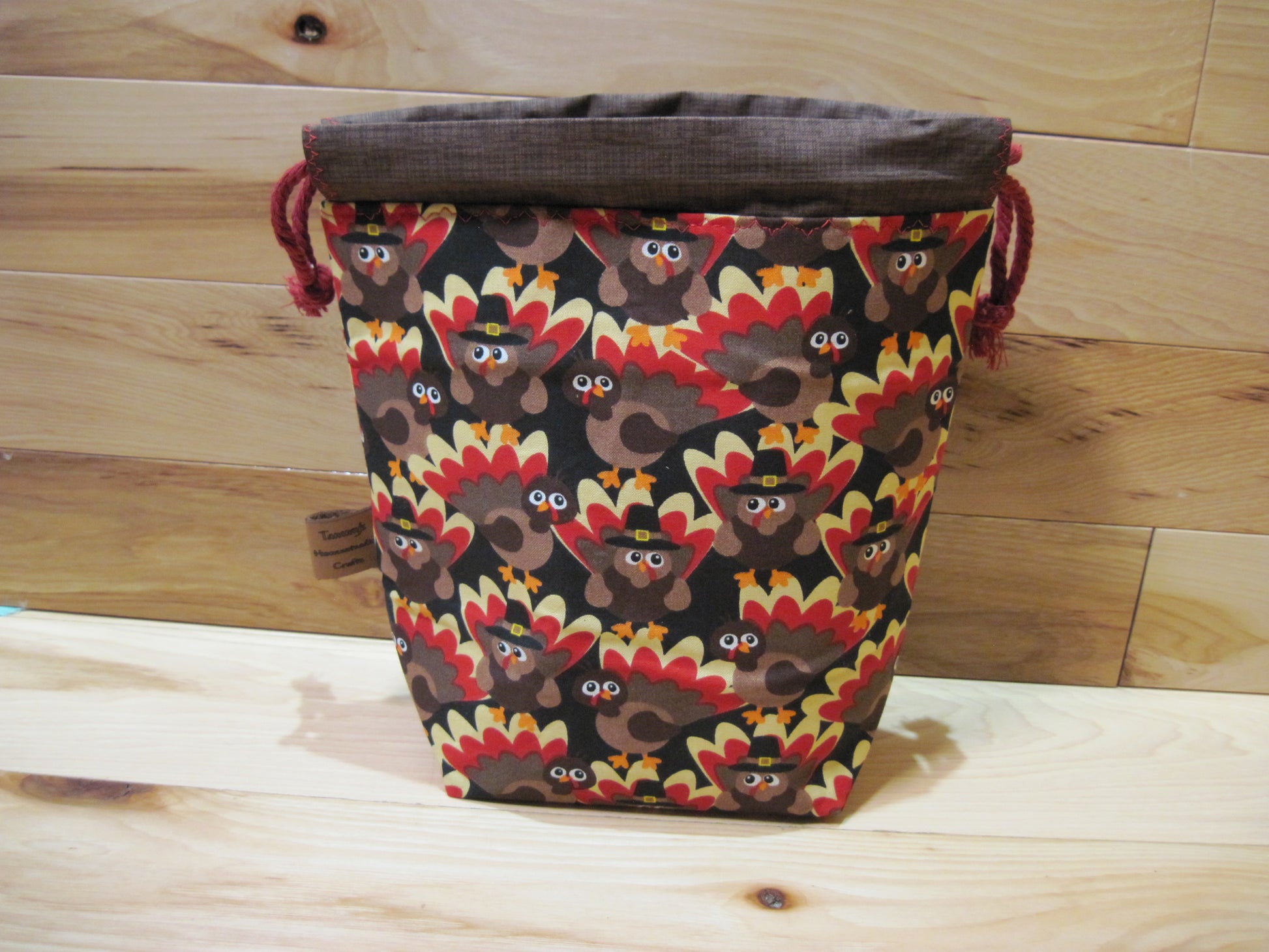 Small Drawstring ~ Turkey w/ "gobble gobble" ~ Project bag