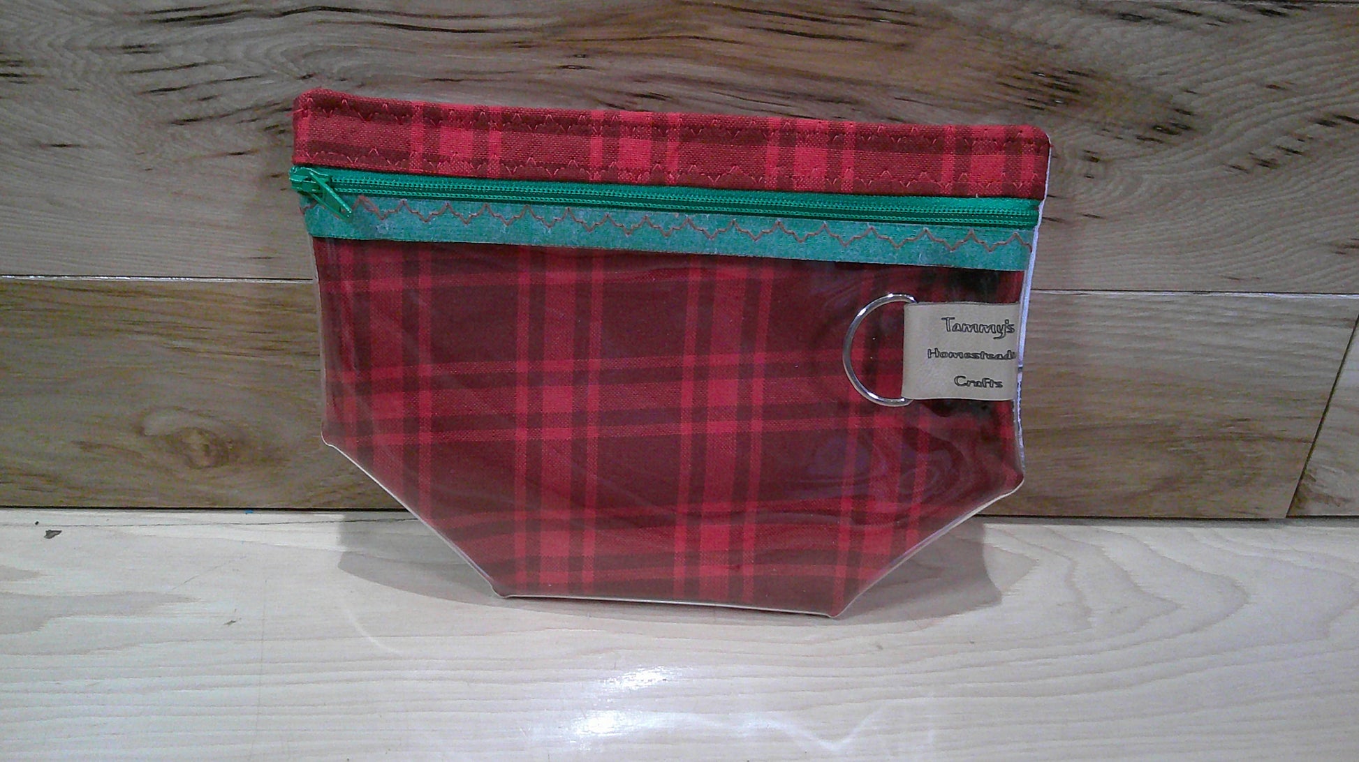 The small notions size bag to keep things like scissors, stitch markers, progress keepers, tape measure and other little things you might need for your projects. There is a D-ring on the inside to hold stitch markers. This bag has a zipper on the front top and a vinyl front so you can see what is in your bag.
