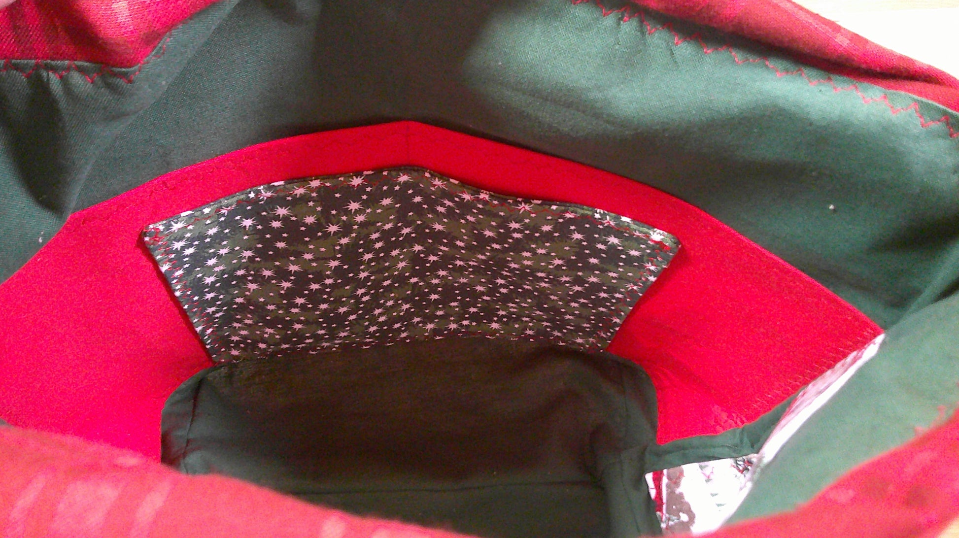 The Large bag size has sewn in handles and a 4-inch top gusset with drawstring for closure. There is a key ring inside to keep progress keepers and stitch markers on. The drawstrings are long enough so you are able to roll the extra top fabric down to make a yarn bowl bag for knitting or crocheting out of. The bag is fully lines with medium weight interfacing between to allow is to stand upright. This bag has 5 pockets on the inside of the bag that are sturdy and make the bag nice and firm.